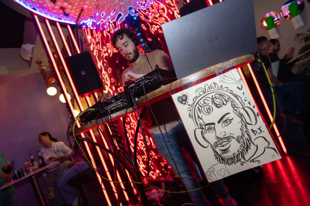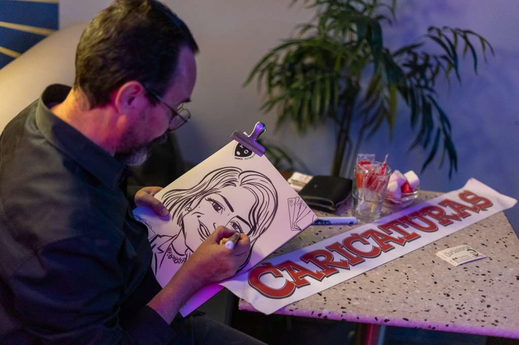 A las 22:45 h, el arte se coló entre las copas gracias a un caricaturista en directo, que supo capturar con humor la esencia de cada persona. En pocos minutos, una simple hoja en blanco se transformaba en un reflejo divertido de quien se atrevía a posar, recordándonos que en BESO, Atrevimiento o Verdad, incluso el arte sabe reírse un poco de ti.